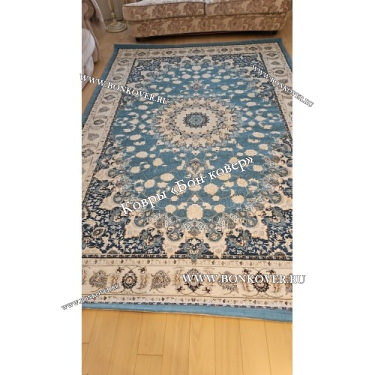 Турецкий Ковер Для гостиной New дизайн 99 Голубой станет превосходным дополнением интерьера, оформленного в современном или классическом стиле. Мягкое, но прочное, ковровое изделие обеспечивает тепло- и шумоизоляцию, отличается длительным сроком эксплуатации, пожаробезопасностью, экологичностью и высокой износостойкостью, является отличным противодействием от повышенной влажности в комнате и утеплителем для холодного пола. Благодаря качеству материалов, ковер не деформируется, сохраняет форму под тяжестью предметов мебели. За его поверхностью легко ухаживать.